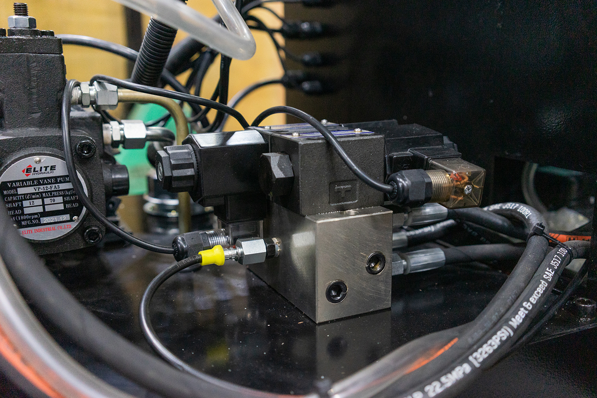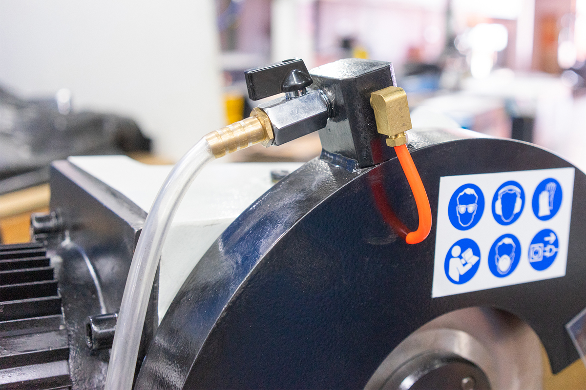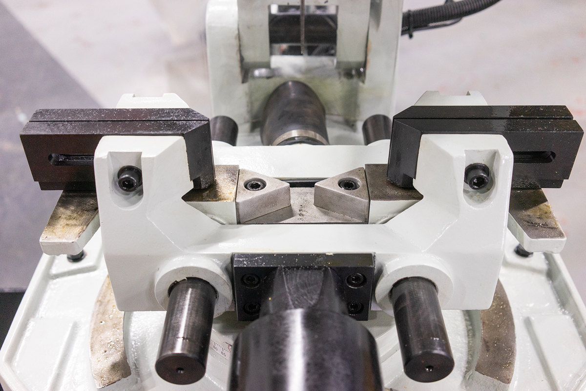 Прочная массивная станина со встроенным баком для СОЖ, обеспечивает жeсткость конструкции и сводит к минимуму вибрации при резке заготовки.