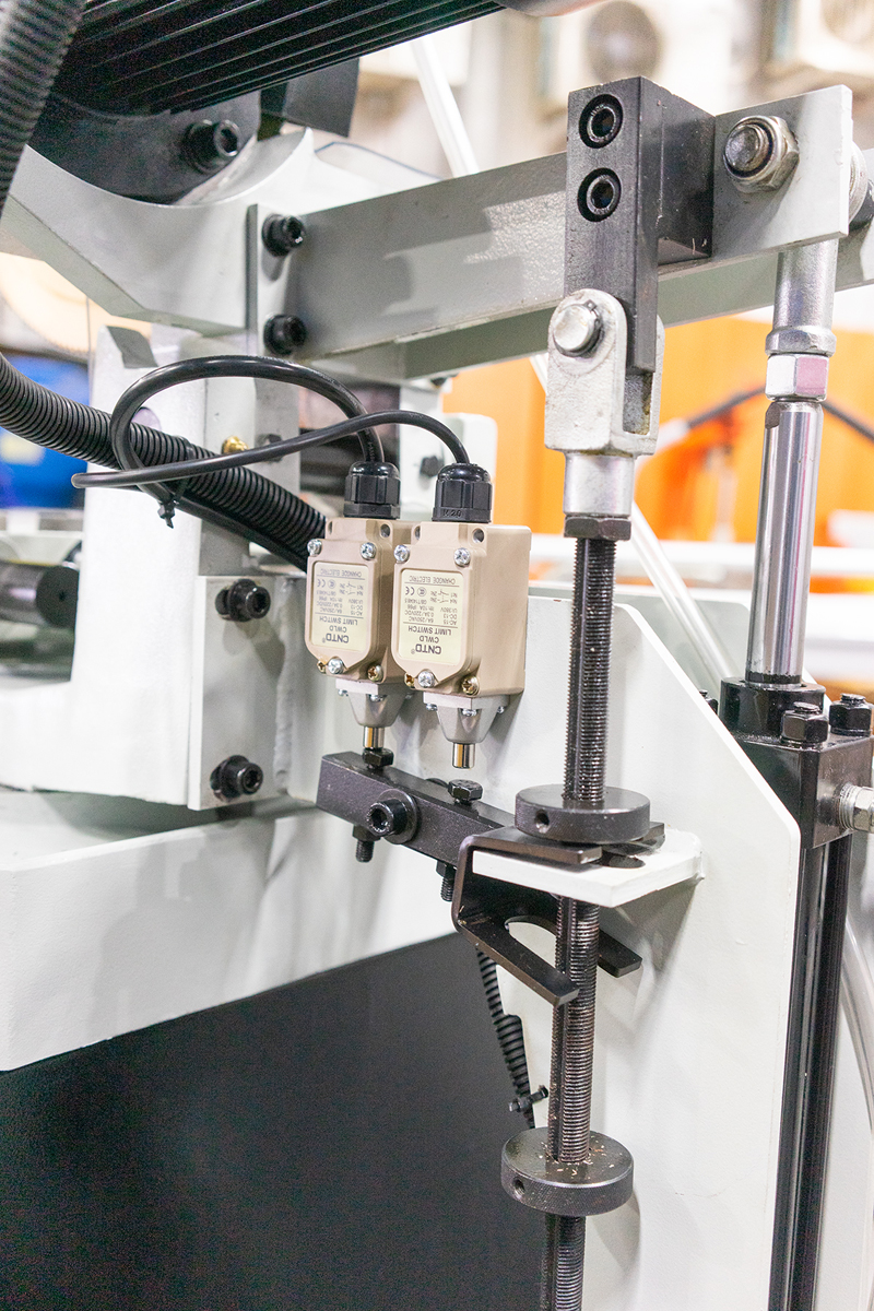 Процесс разрезки заготовки в автоматическом режиме способствует удобной работе на станке, для этого станок оснащен выносной педалью, для запуска режима резки. В конце разреза, диск поднимается вверх, в исходную точку.