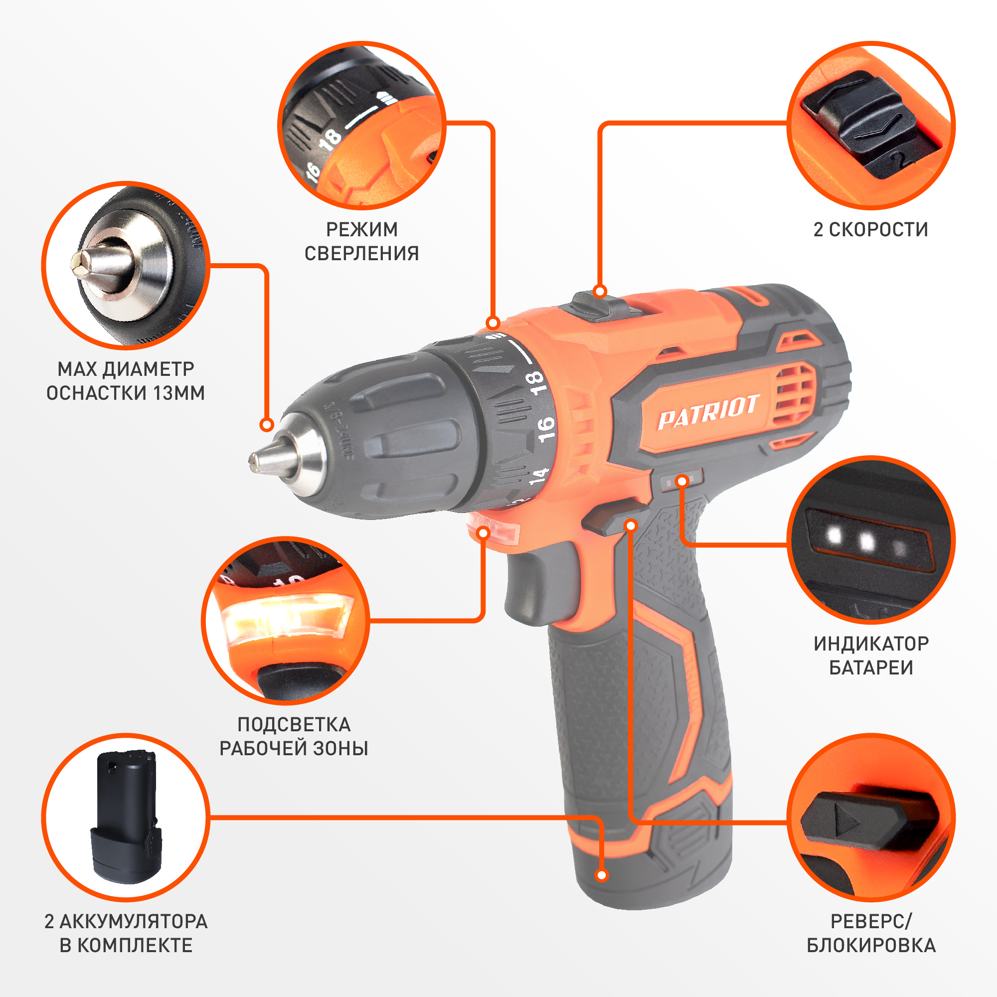 Дрель-шуруповерт аккумуляторная PATRIOT BR 189 UES