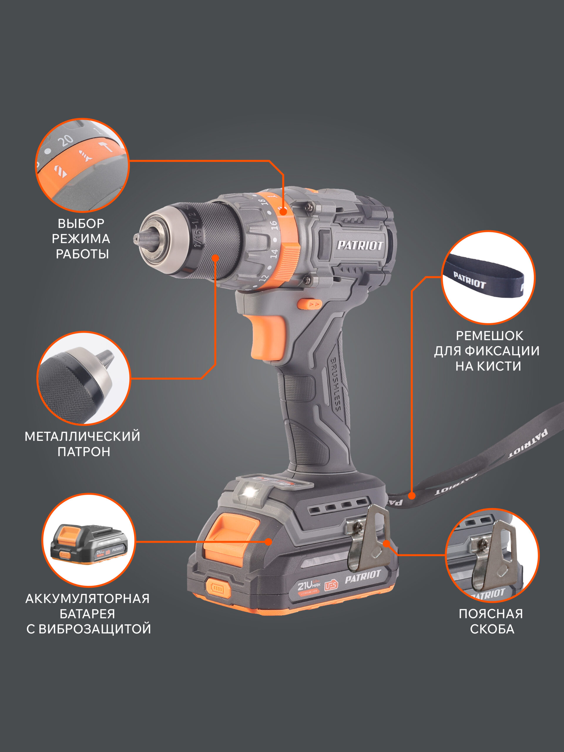 Дрель-шуруповерт аккумуляторная PATRIOT BR 212 UES