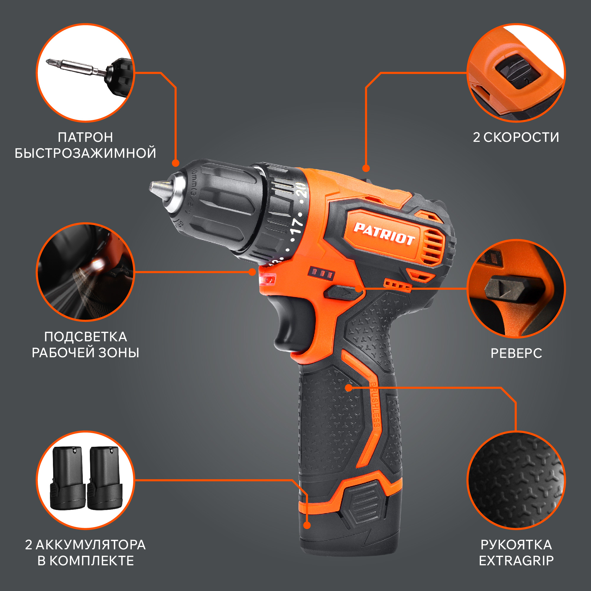 Дрель-шуруповерт аккумуляторная PATRIOT BR 189 UES