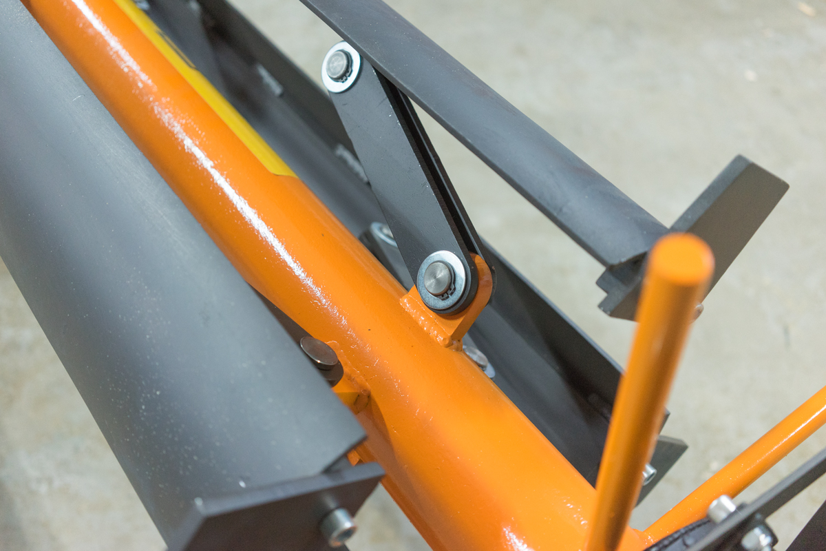 Вал с синхронным разжимом лап позволяет быстро и точно зафиксировать рулон, а двухопорная конструкция рамы обеспечивает безопасную работу. Разжим лап осуществляется при вращении рукоятки.