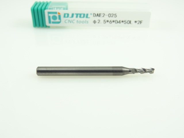 Двухзаходная фреза по алюминию DJTOL: диам. 2.5 мм, хвост. 4 мм, реж. часть 6 мм