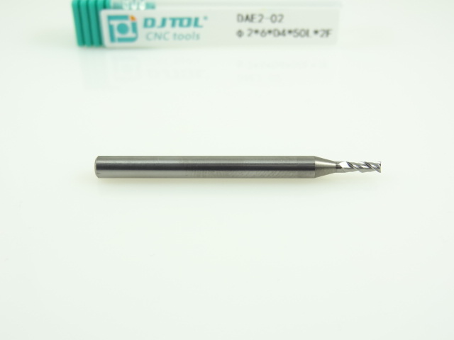 Двухзаходная фреза по алюминию DJTOL: диам. 2 мм, хвост. 4 мм, реж. часть 6 мм
