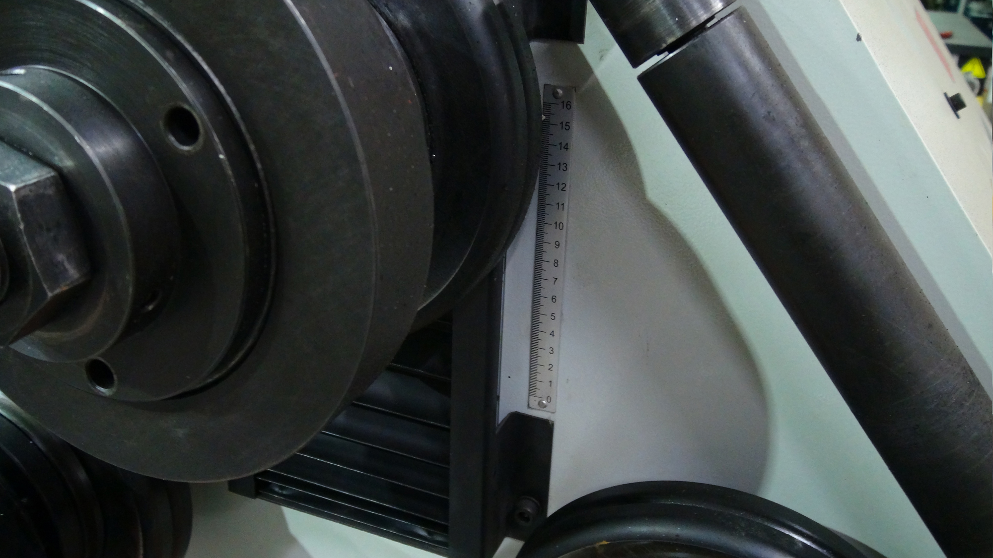 Вдоль перемещения верхнего ролика на станке установлена шкала повторяемости