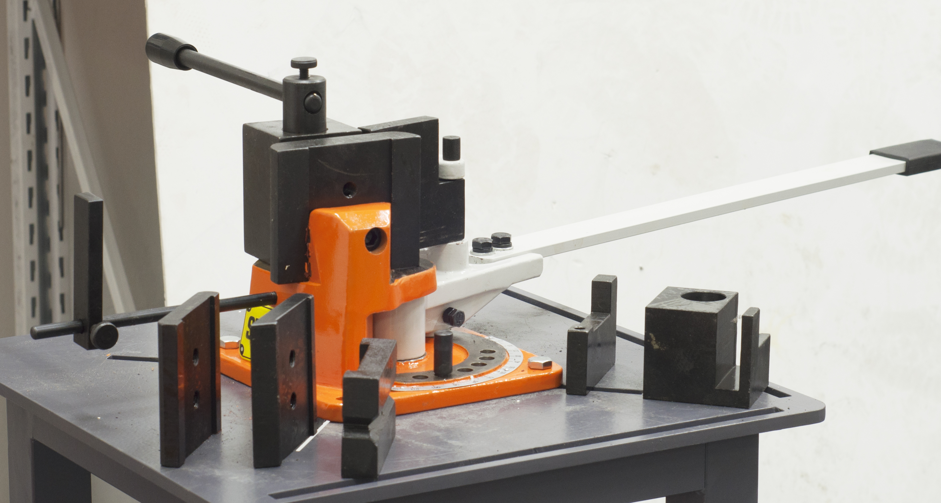 Универсальный станок широкого применения, жесткая и массивная конструкция станка обеспечивает необходимое качество исполнения при работе с низкоуглеродистой сталью и цветными металлами. Прочный корпус с набором оправок, прост и безопасен в эксплуатации, максимальный угол гибки — 120°. Точность выполнения операций, возможность задавать угол гибки различного радиуса. Предназначен для работы холодном и нагретом состоянии с полосой, прутком, угловой сталью.