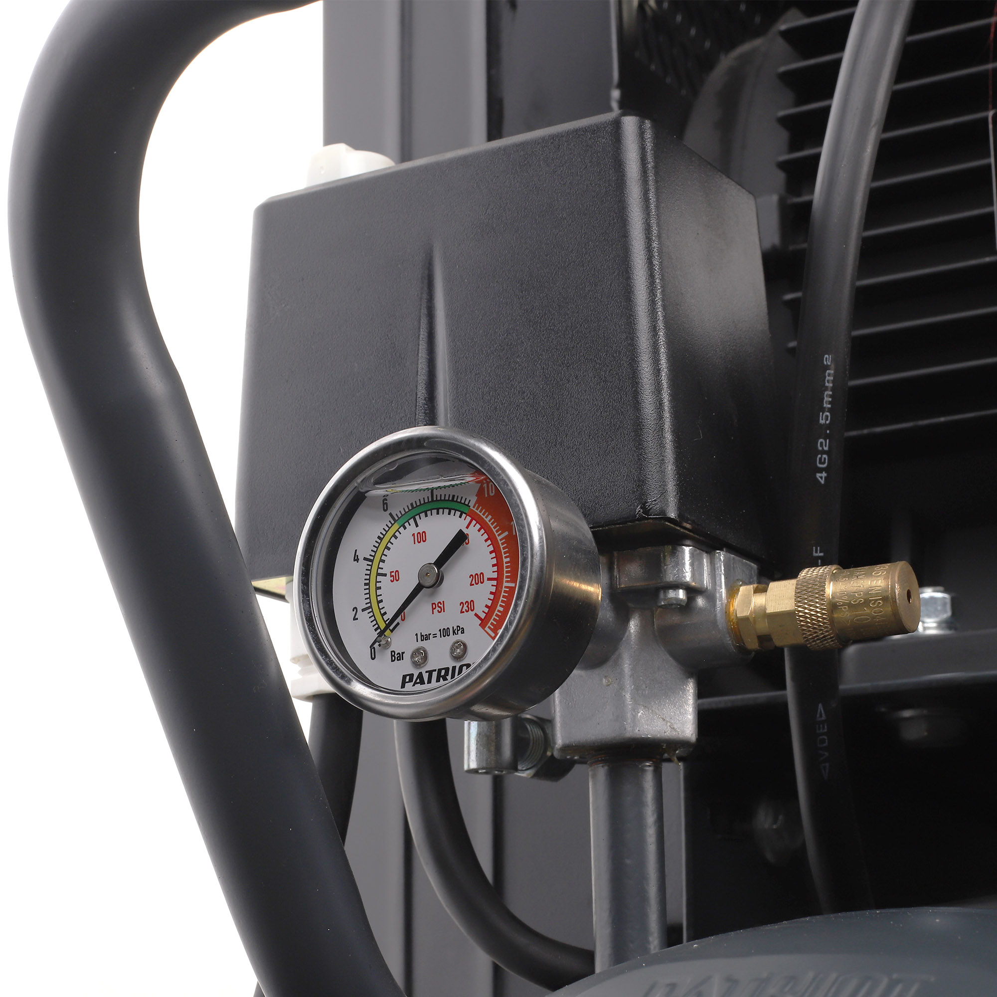 Профессиональный компрессор масляный для пневмоинструмента на сервисных, ремонтных и прочих работах, небольших производствах, в сферах услуг. Производительности 950 л/мин (57 м3/ч) достаточно для пескоструйных, монтажных и строительных работ. При подключении подходящего пневмоинструмента, справится с такими задачами, как продувка труднодоступных мест, подкачка шин, нанесение смазочных материалов. Быстросъемный штуцер (¼») и кран с вентилем для подключения пневмоинструмента. Объем ресивера — 100 л. Работает от напряжения 400 В, предназначен для использования в трёхфазной сети.