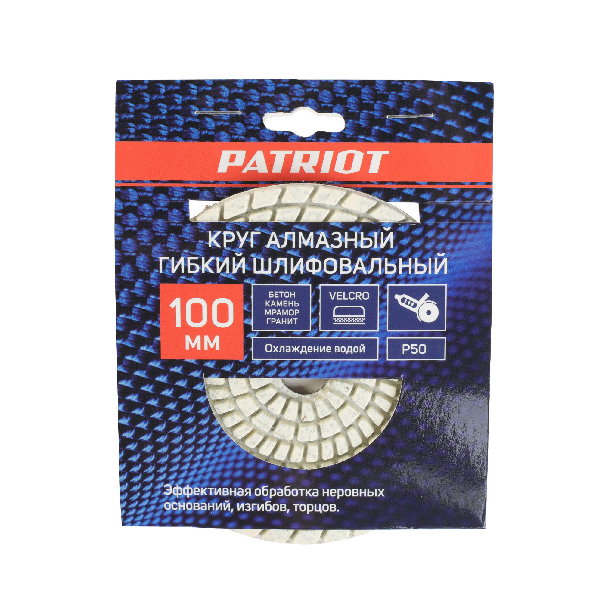 Предназначен для ручных шлифовальных машин. Применяется для обработки бетонных конструкций, камня, изделий из мрамора и гранита. Круг изготовлен на гибкой основе, имеет алмазное напыление и крепится при помощи липучки.