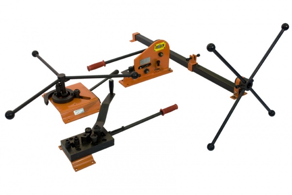 Набор STALEX W2 представляет собой комплект из формовочного, гибочного и закручивающего устройств. Отличный станок для мастерской, изготавливающей металлические изделия разнообразного назначения, преимущественно декоративные кашпо, элементы оград, канделябры, лотки для кабеля и так далее. Станок обрабатывает прутки, заготовки с квадратным сечением до 9,5 мм.