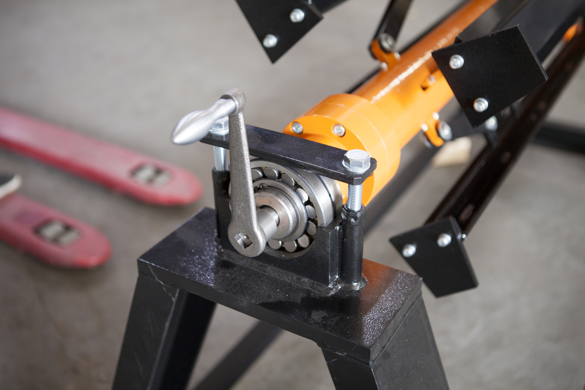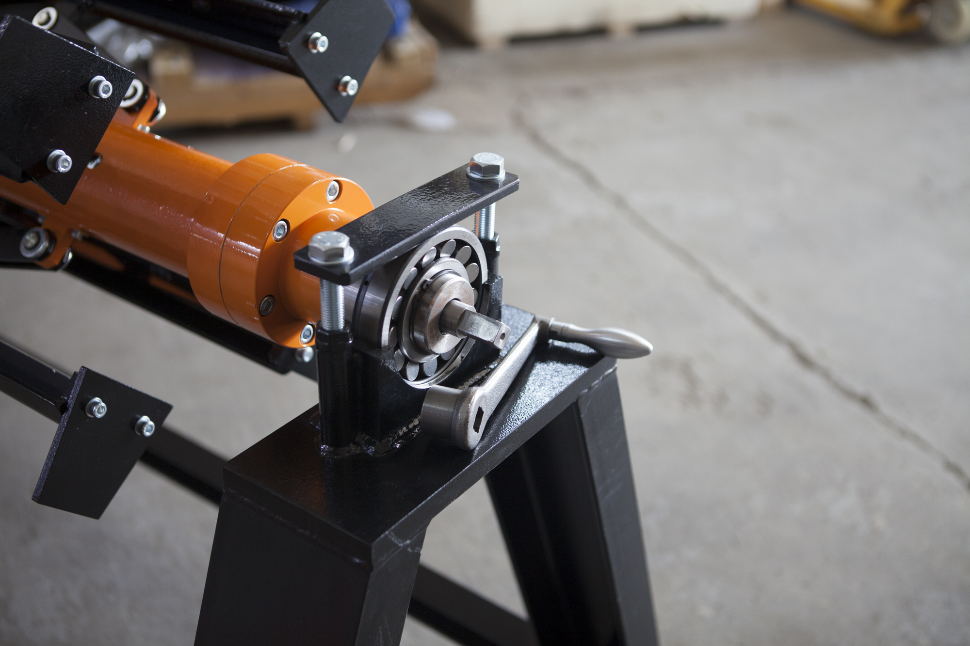 Вал с синхронным разжимом лап позволяет быстро и точно зафиксировать рулон, а двухопорная конструкция рамы обеспечивает безопасную работу. Разжим лап осуществляется при вращении рукоятки.