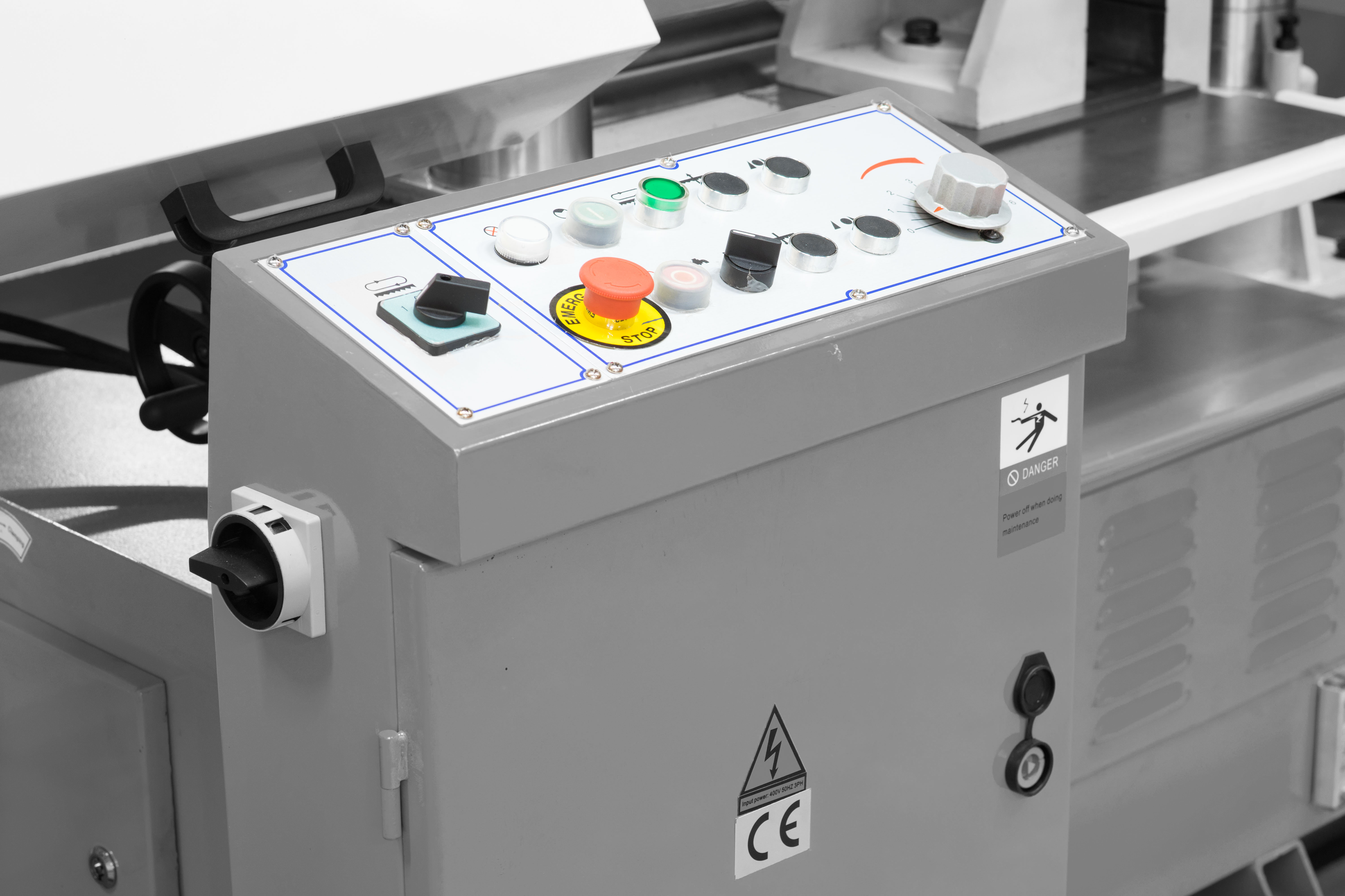Полуавтоматический ленточнопильный станок, предназначен для пиления труб и сплошных заготовок, максимальным диаметром круга 400 мм и прямоугольной заготовки 400×400 мм под углом 90°.