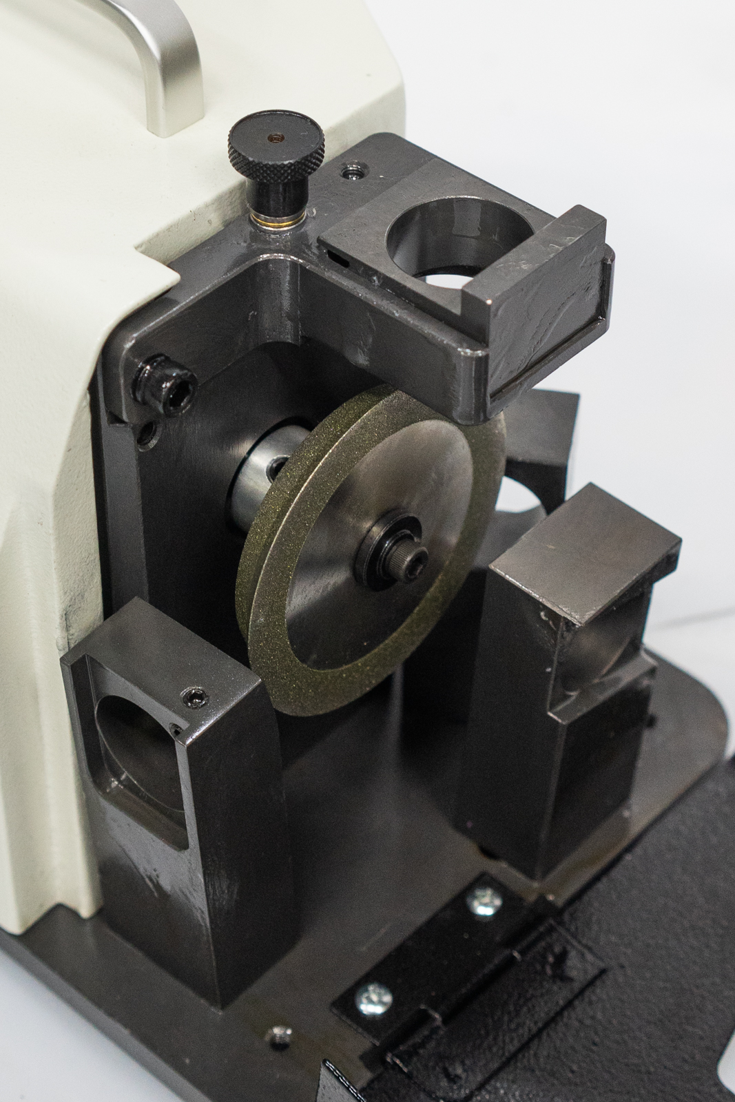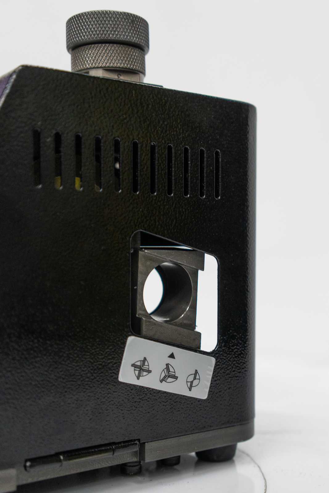 Удобный станок для заточки концевых фрез диаметром от 4 до 14 мм по режущим кромкам.