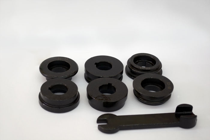 Комплектуется четырьмя наборами стандартных роликов для закатки кромок, отбортовки, изготовления S-образного профиля.