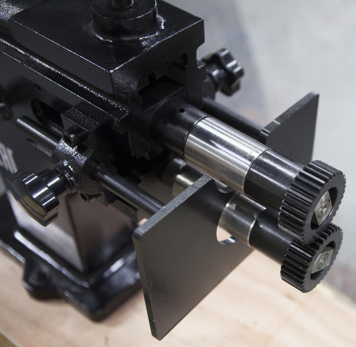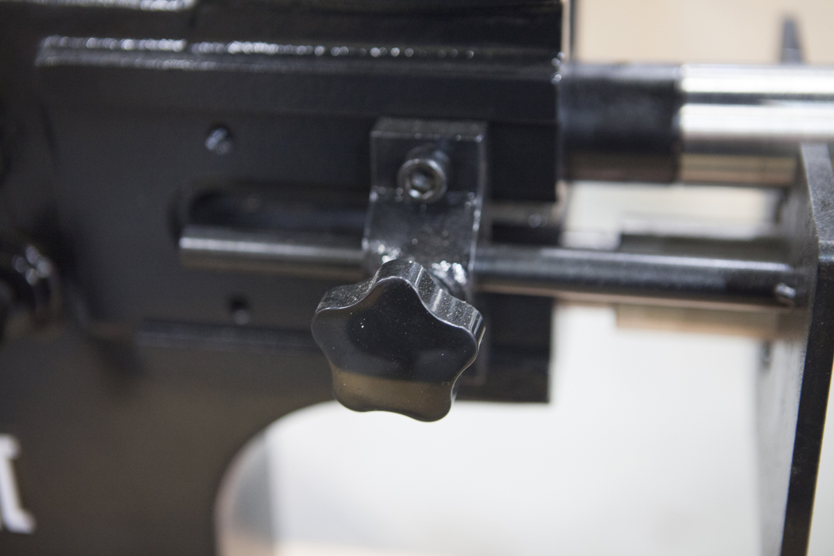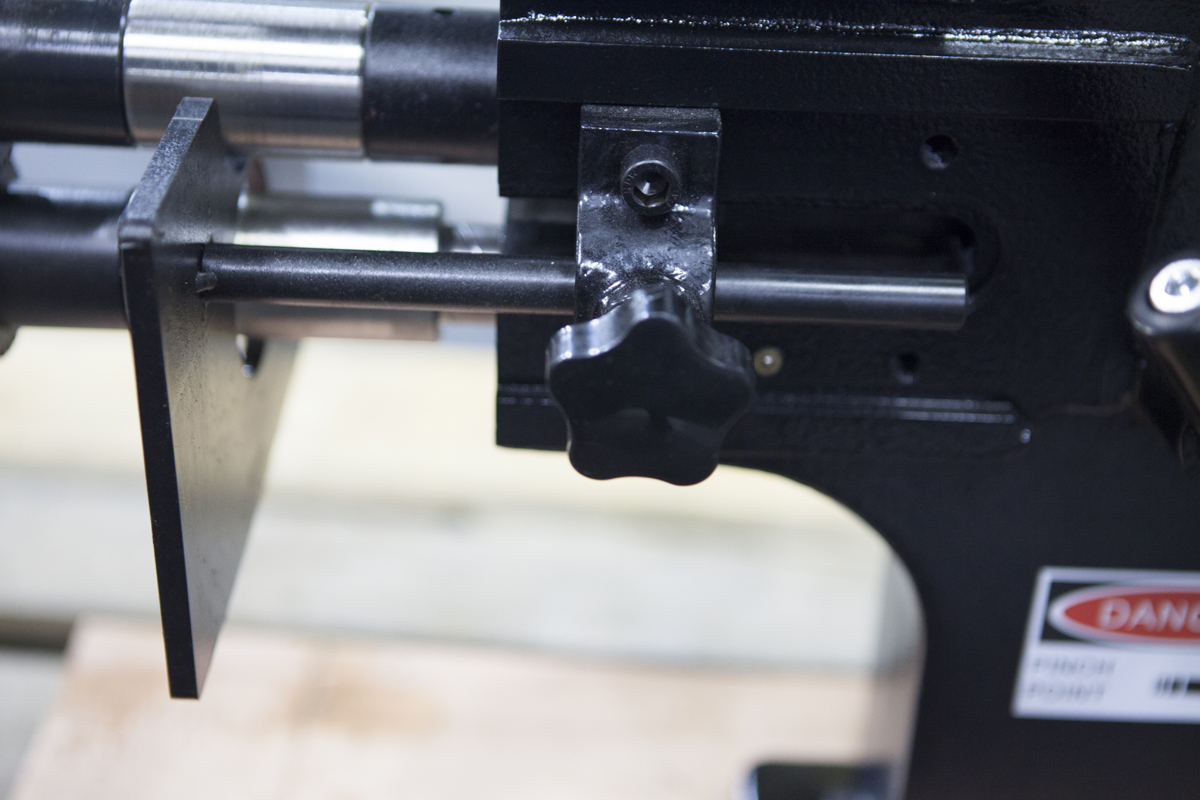 Два компактных упора для заготовок расположены по сторонам станка