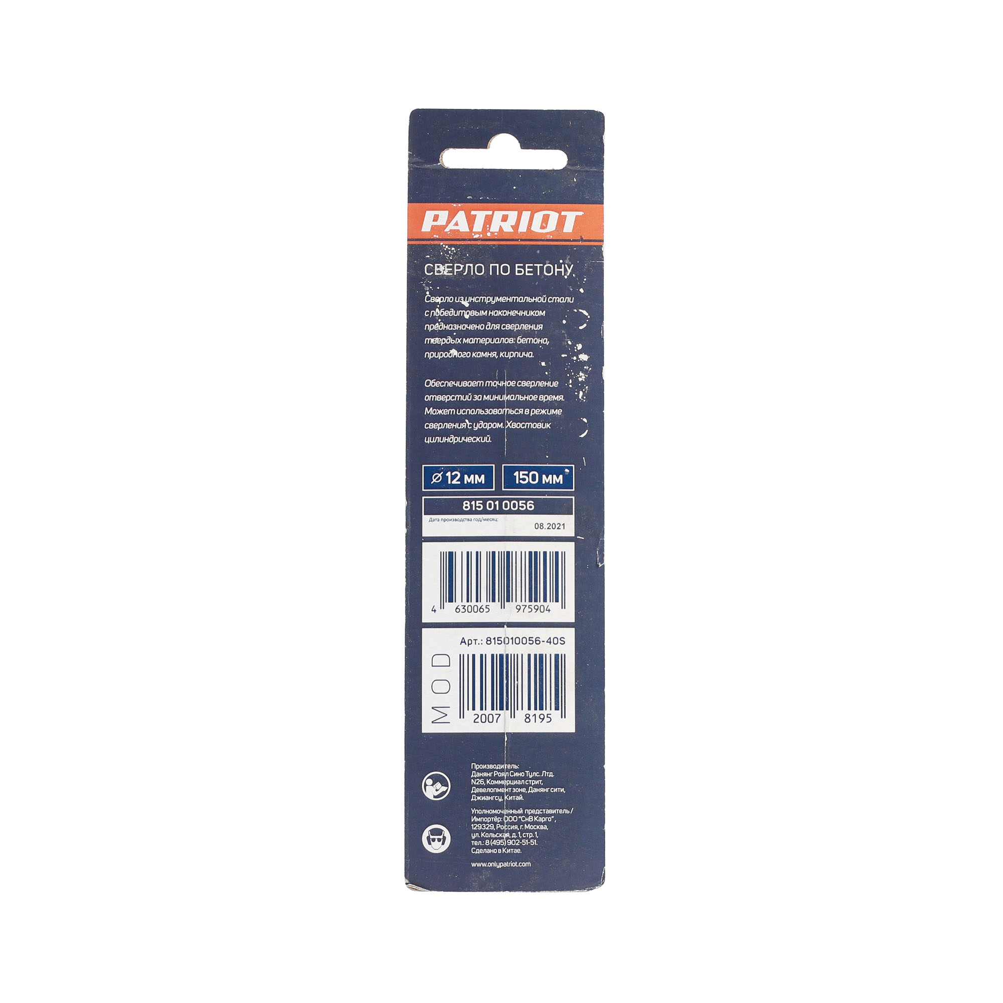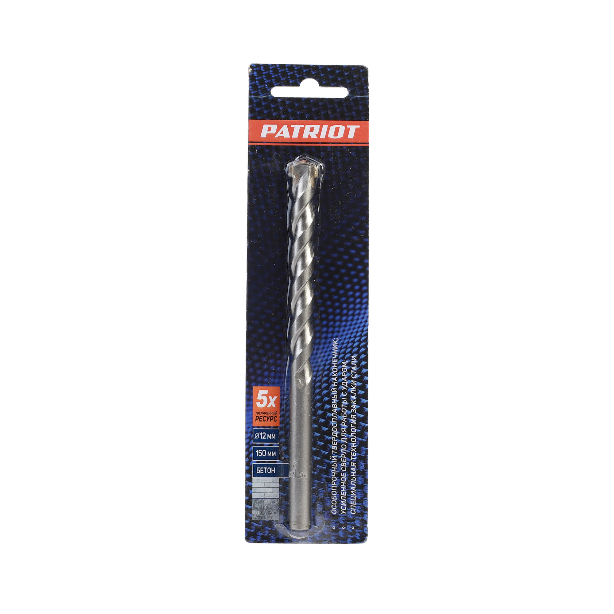 Наружный диаметр: 12 мм; Длина сверла: 150 мм; Обрабатываемый материал: бетон,кирпич