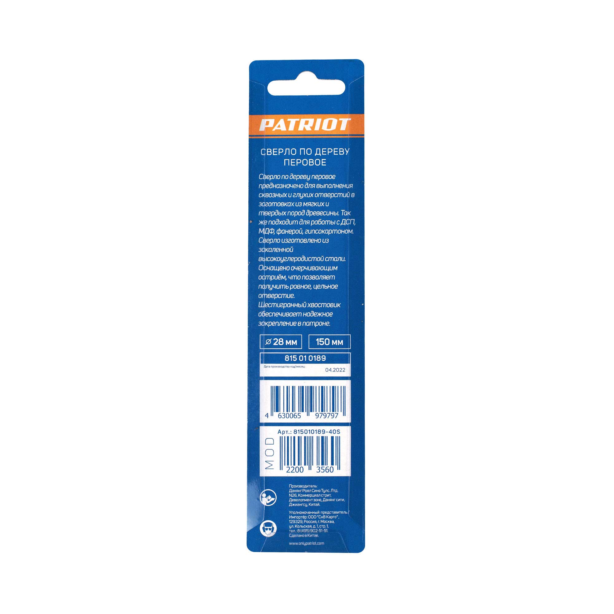 Диаметр: 28 мм; Хвостовик: 1/4″; Длина сверла: 150 мм; Обрабатываемый материал: дерево; Материал сверла: инструментальная сталь;