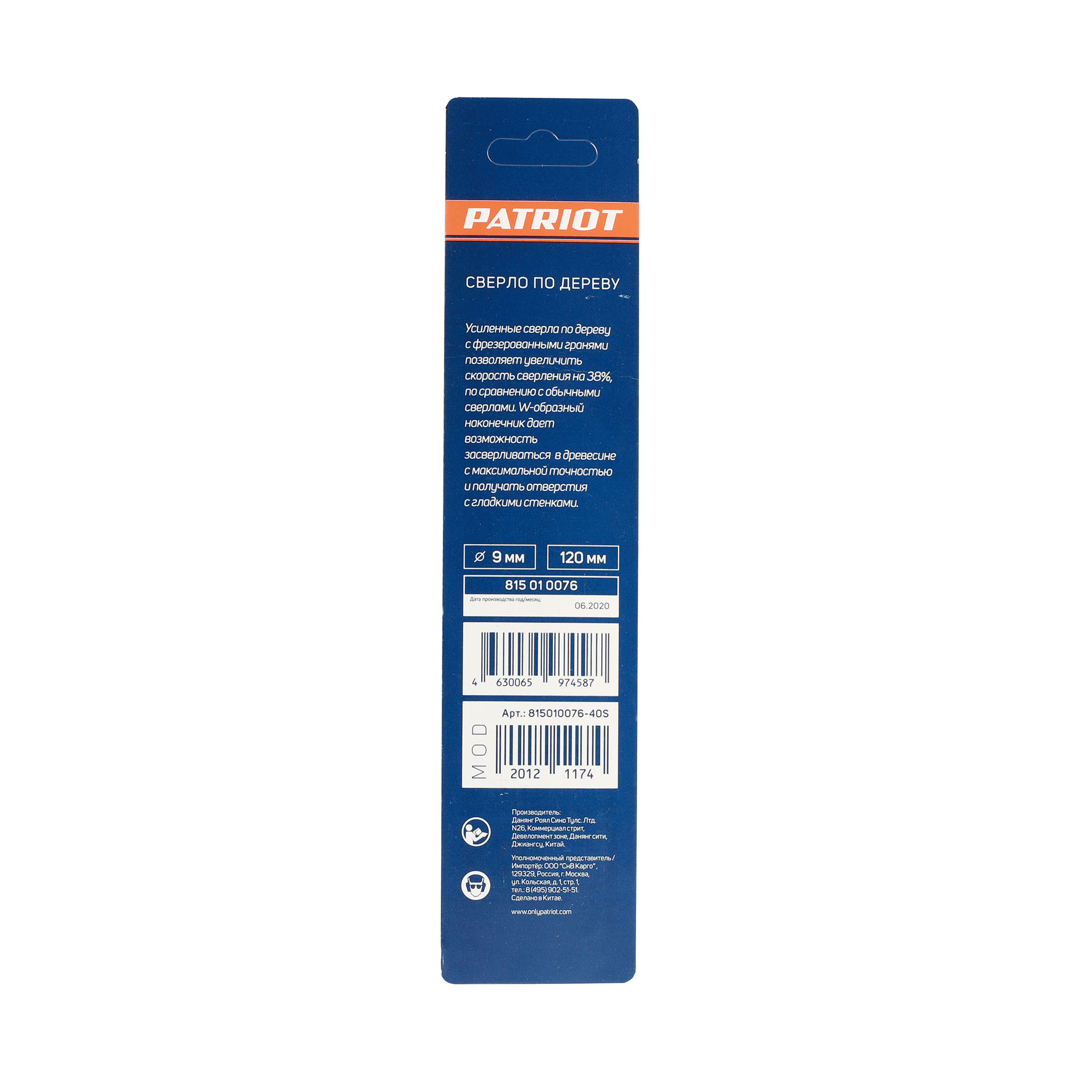 Наружный диаметр: 9 мм; Хвостовик: 9 мм; Длина сверла: 120 мм; Обрабатываемый материал: дерево; Материал сверла: инструментальная сталь;
