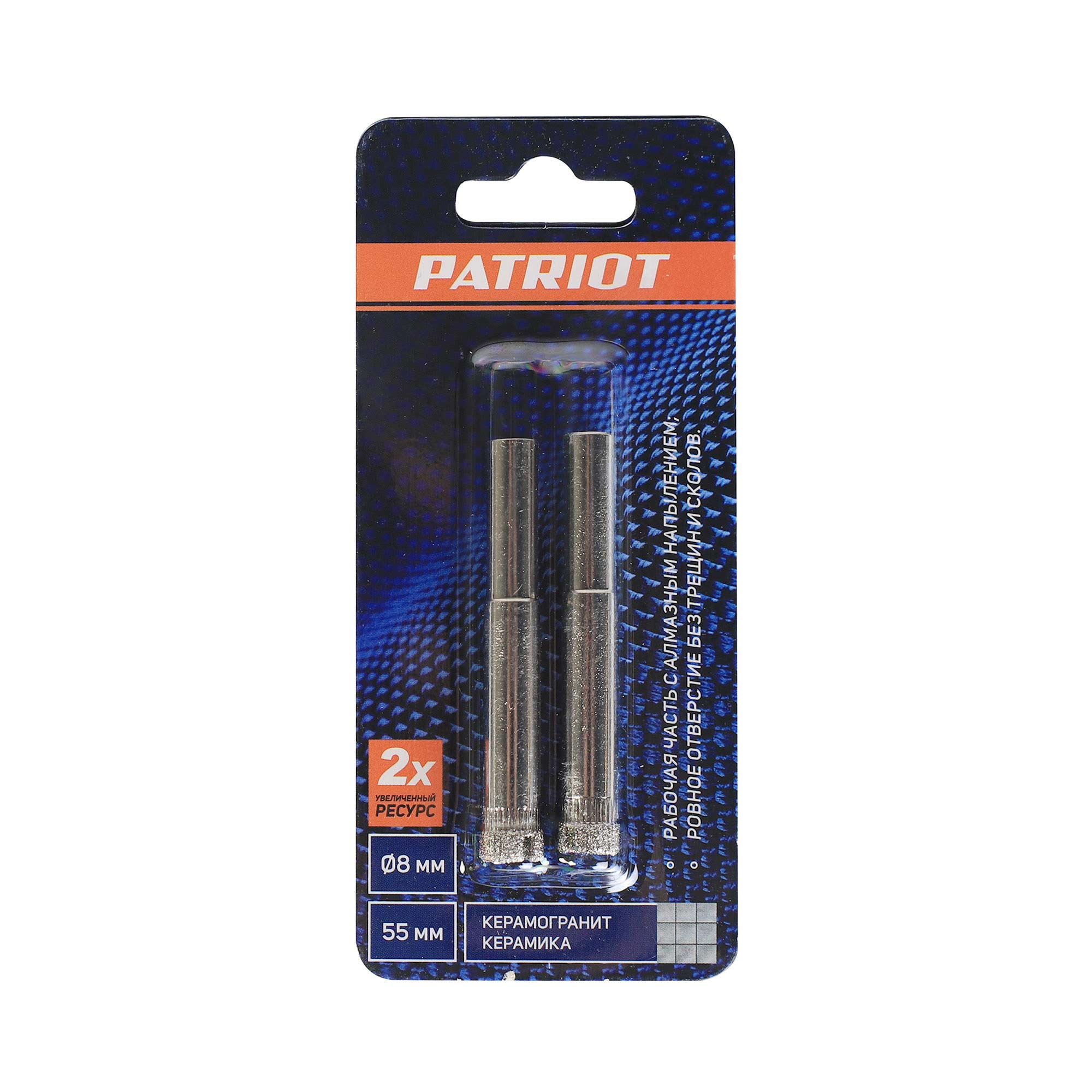 Наружный диаметр: 8 мм; Длина сверла: 55 мм; Обрабатываемый материал: керамическая плитка, стекло