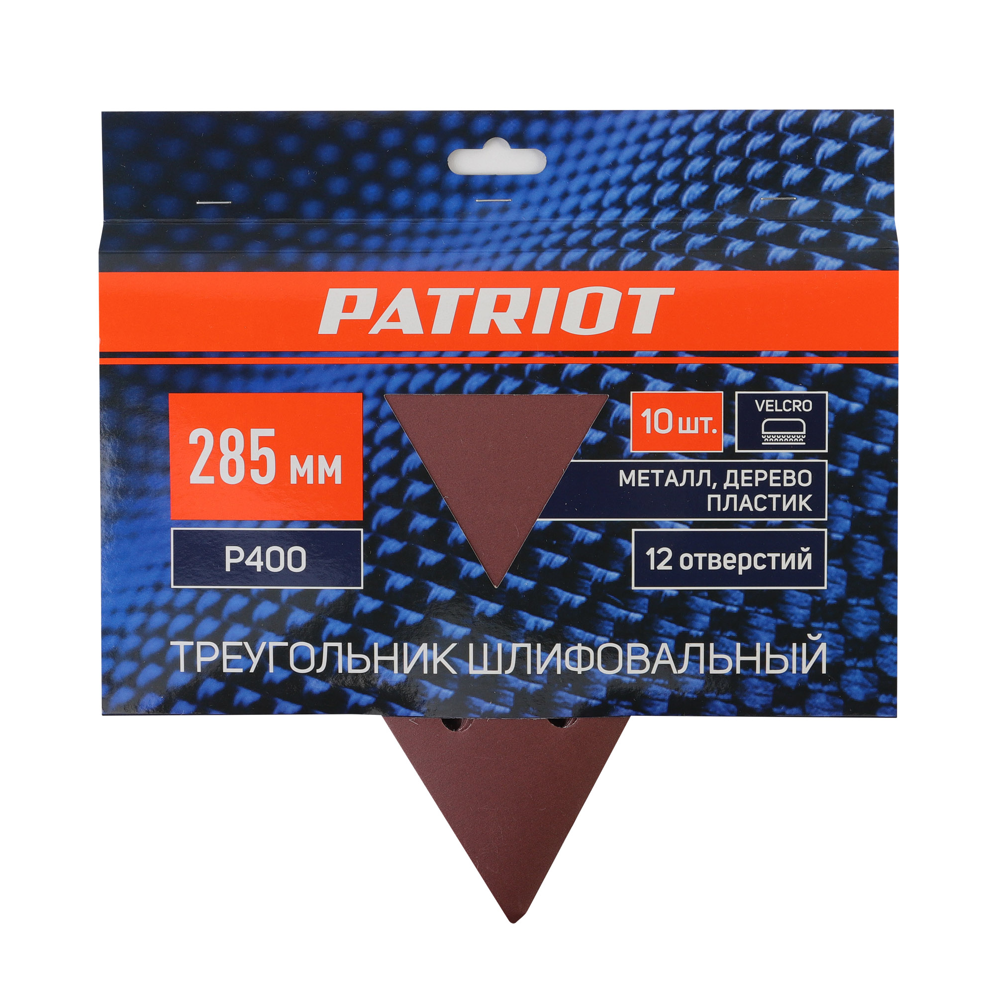 Треугольник шлифовальный на липучке (285мм, Р400, 12 отв)