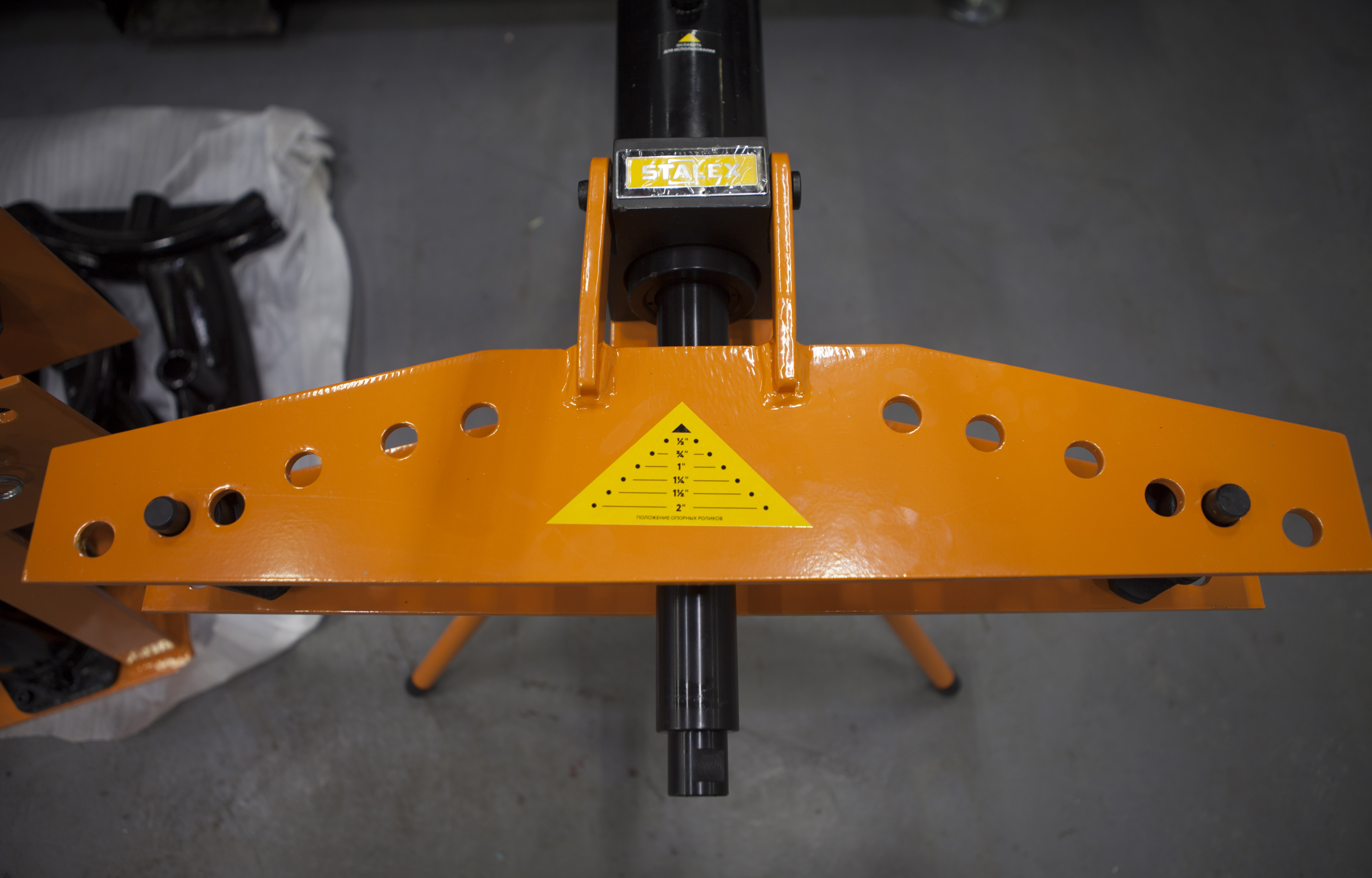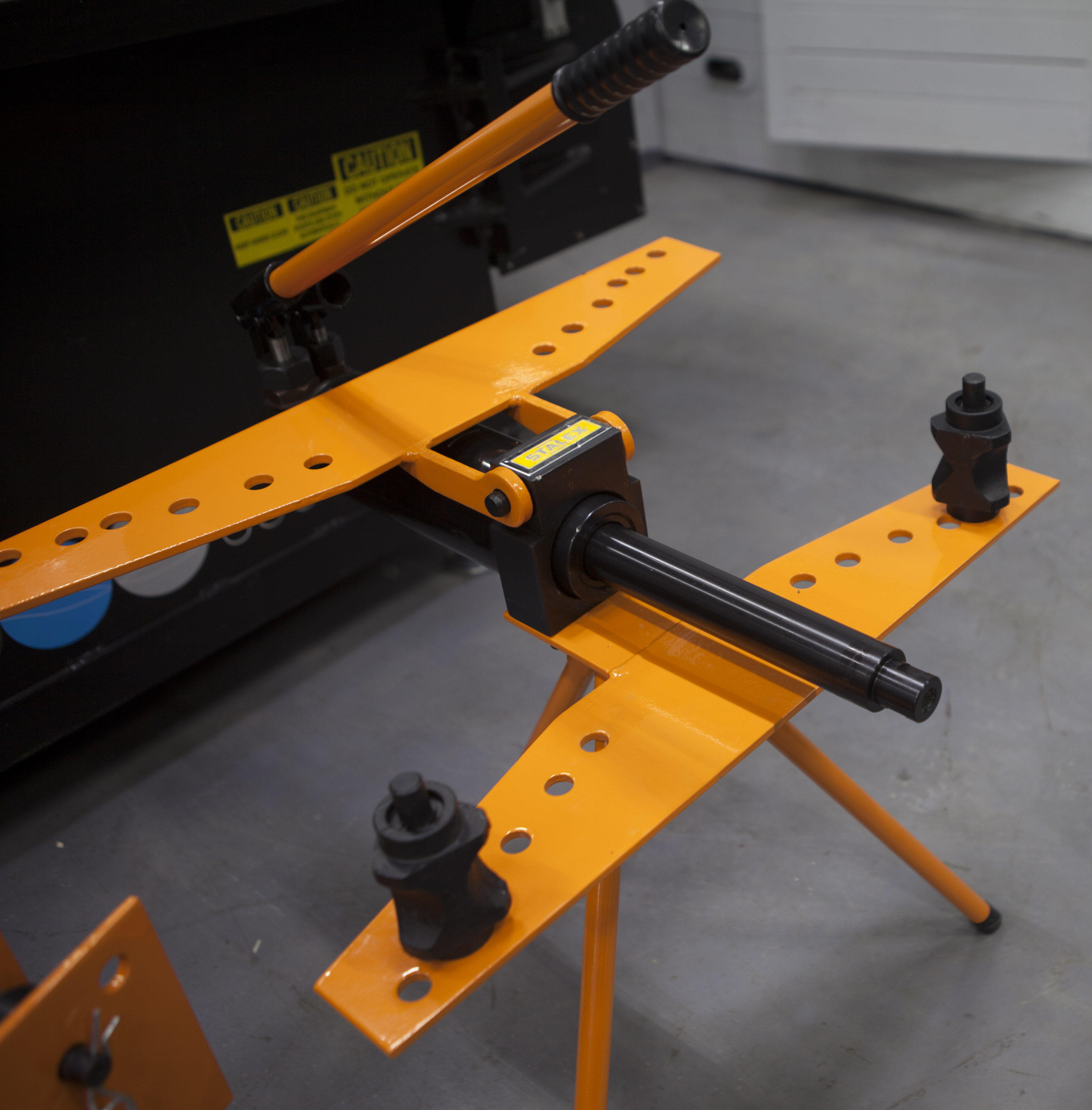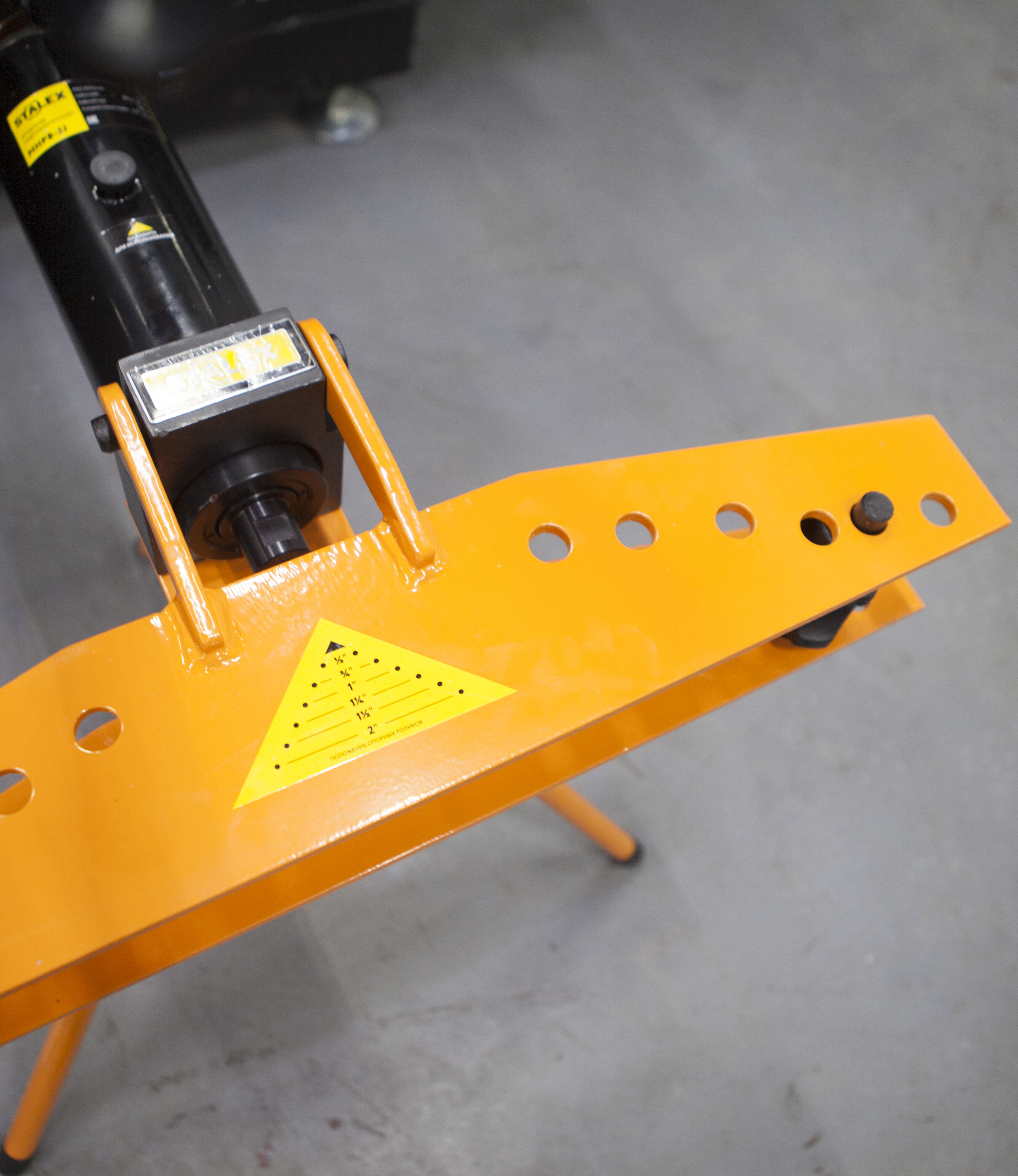 Модель Stalex MHPB-2J продавливает заготовки при помощи гидравлической направляющей, с набором сменных рабочих оправ. Помимо шести рабочих опор станок имеет две горизонтальные опоры, устанавливаемые в отверстия для регулировки радиуса гиба.