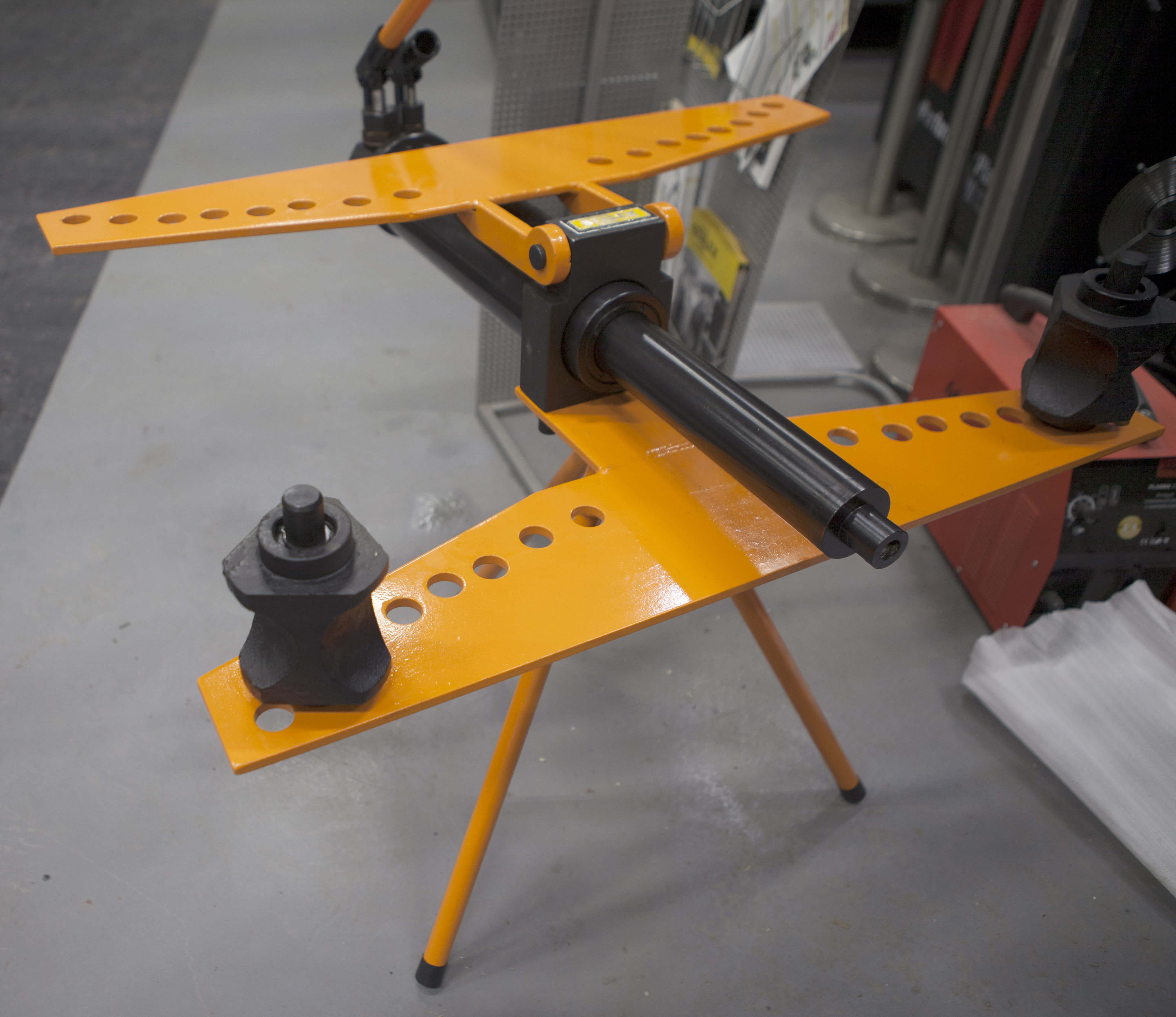 Тип станка – ручной гидравлический отличен от других вариантов ручных трубогибов тем, что его привод усилен гидравликой. Это позволяет монтажнику прикладывать меньше усилий при гибки стальных труб, и затрачивать на гибку гораздо меньше времени.