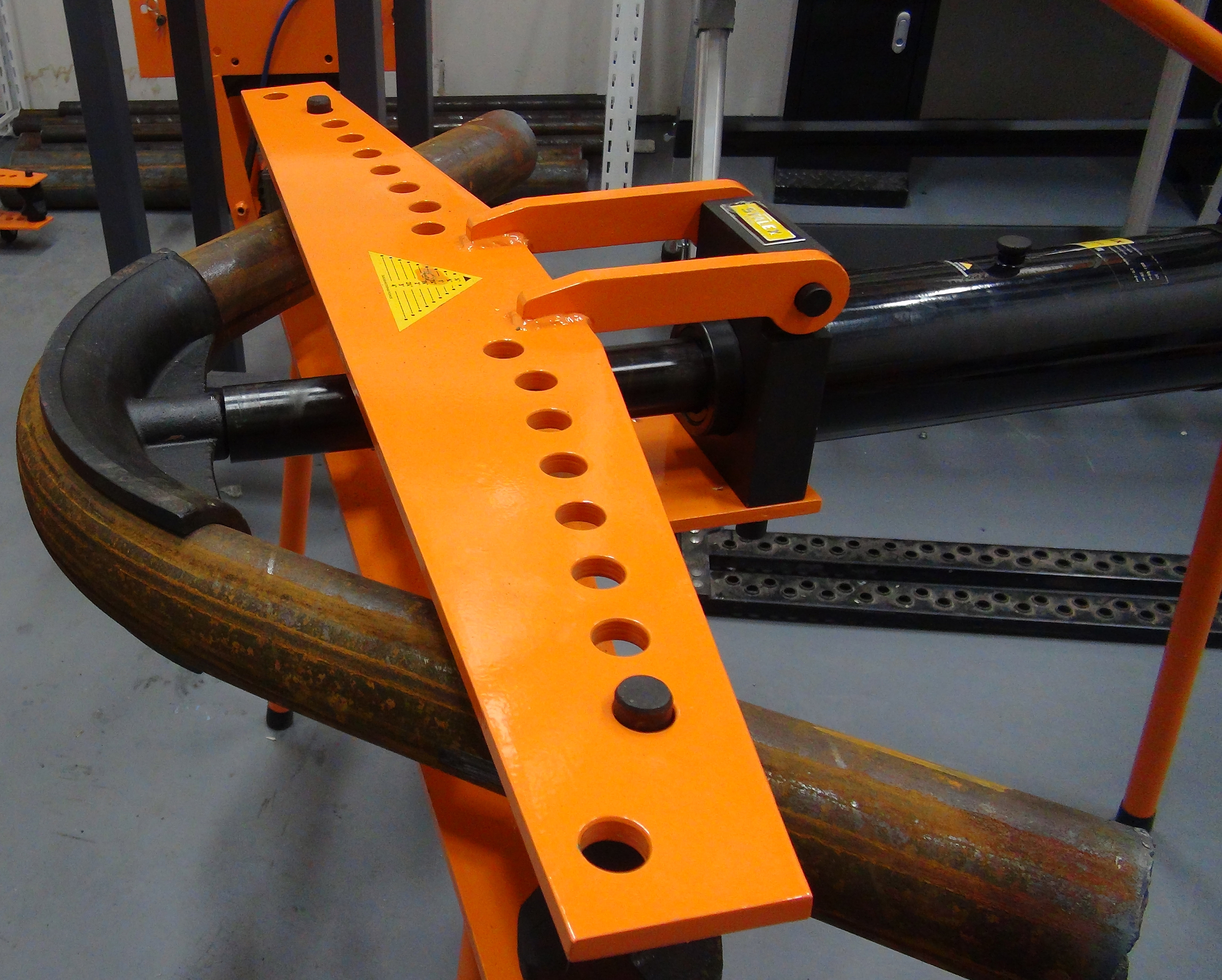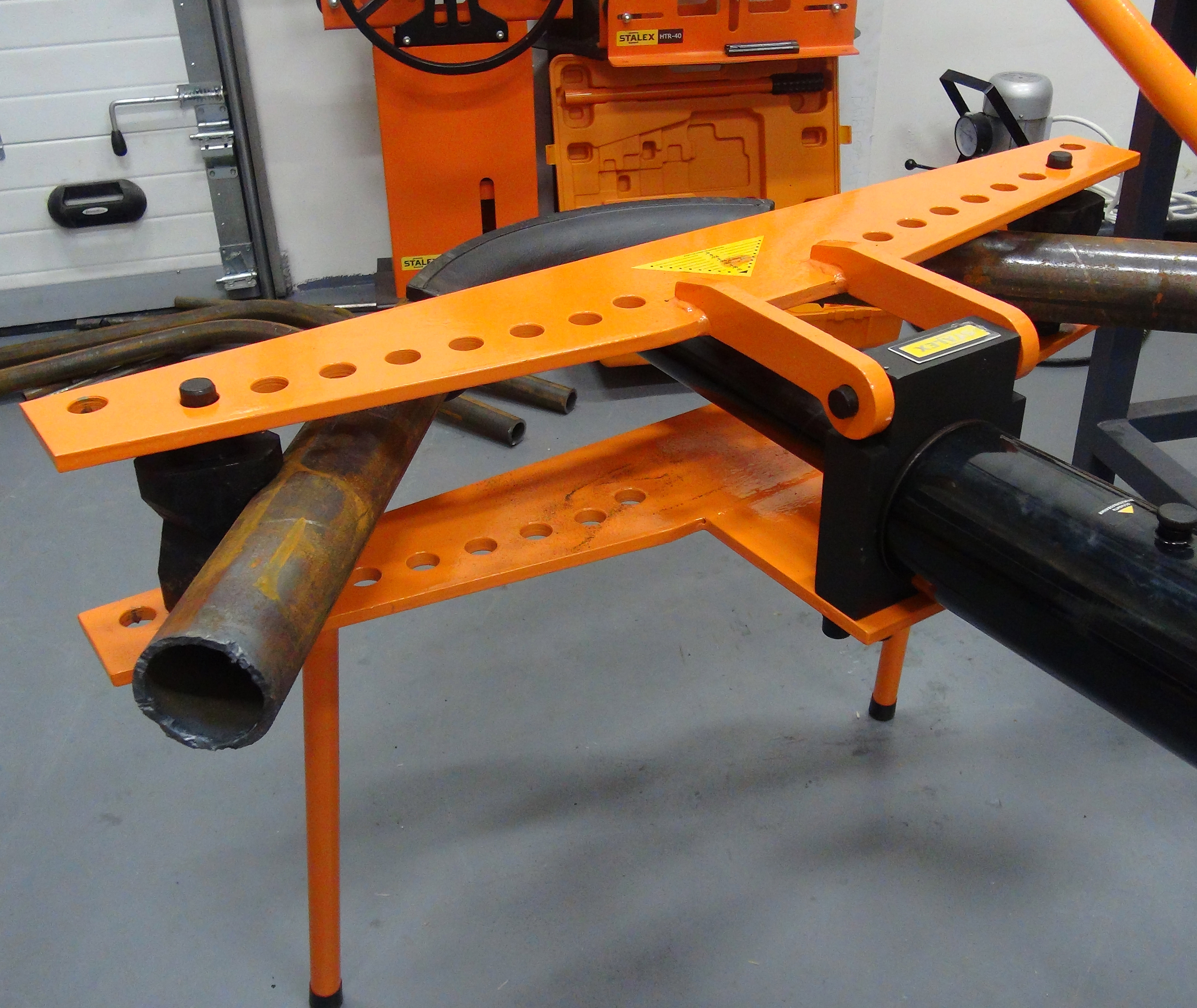 Модель Stalex MHPB-4J продавливает заготовки при помощи гидравлической направляющей, с набором сменных рабочих оправ. Помимо девяти рабочих опор станок имеет две горизонтальные опоры, устанавливаемые в отверстия для регулировки радиуса гиба.